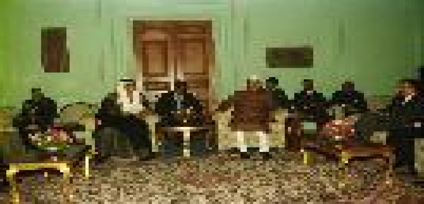 The President of India, Dr. Shankar Dayal Sharma meeting with H.E. Mr. Abdulla Bin Hamad Al Attiyah, Minister of Energy & Industry of Qatar at Rashtrapati Bhavan in New Delhi on March 23, 1995.