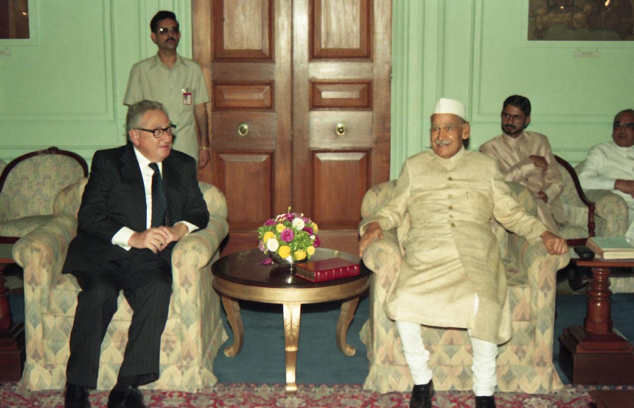 The President of India, Dr. Shankar Dayal Sharma meeting with Mr. Henry A. Kissinger, former US Secretary of State, at Rashtrapati Bhavan in New Delhi on March 23, 1995.