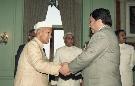 The Prime Minister of Nepal, Rt. Hon'ble Mr. Man Mohan Adhikari and Mrs. Sadhana Devi Adhikari calling on the President of India, Dr. Shankar Dayal Sharma at Rashtrapati Bhavan in New Delhi on April 10, 1995.