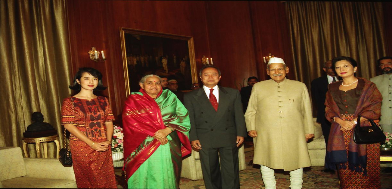 The President of India, Dr. Shankar Dayal Sharma meeting with H.R.H. Samdech Krom Preah Norodom Ranariddh, Prime Minister of the Royal Government of Cambodia and H.R.H. Princess Norodom Mary Ranariddh at Rashtrapati Bhavan in New Delhi on January 31, 1996.