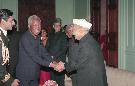The President of India, Dr. Shankar Dayal Sharma meeting with H.E. Mr. Dullah Omar, Minister of Justice of South Africa at Rashtrapati Bhavan in New Delhi on December 22, 1995.