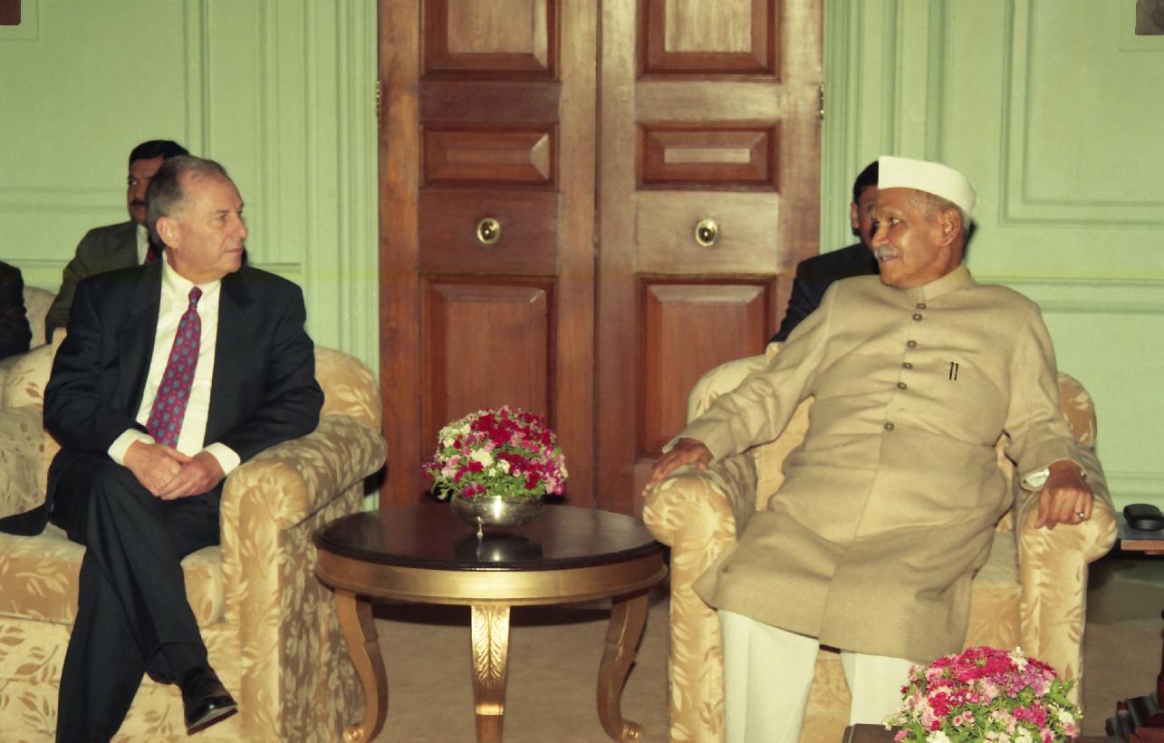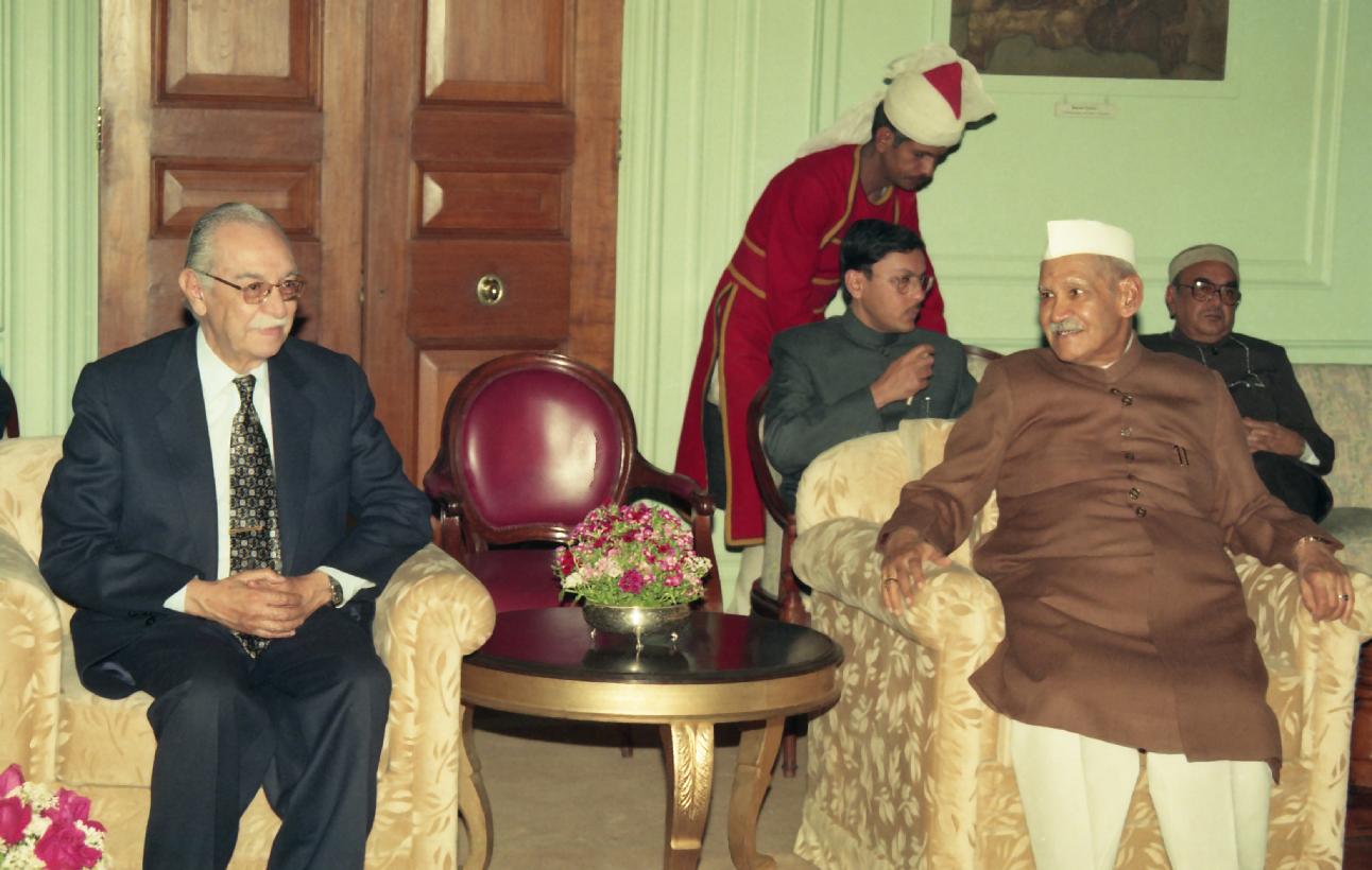 The President of India, Dr. Shankar Dayal Sharma meeting with H.E. Prof. Amnon Rubinstein, Minister of Education & Culture, Government of the State of Israel at Rashtrapati Bhavan in New Delhi on January 19, 1996.