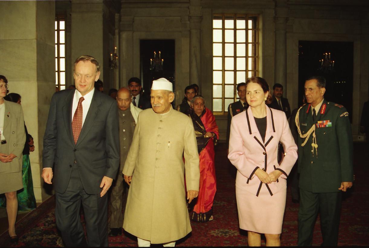 The Right Honourable Jean Chretien, Prime Minister of Canada with Madame Aline Chretien calling on the President of India, Dr. Shankar Dayal Sharma, at Rashtrapati Bhavan in New Delhi on January 11, 1996.