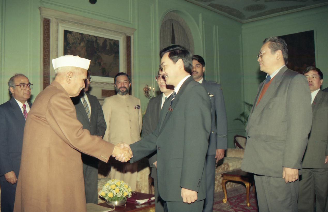 The President of India, Dr. Shankar Dayal Sharma meeting with H.E. Mr. Boris Shikmuradov, Deputy Prime Minister & Foreign Minister of Turkmenistan at Rashtrapati Bhavan in New Delhi on July 11, 1996.