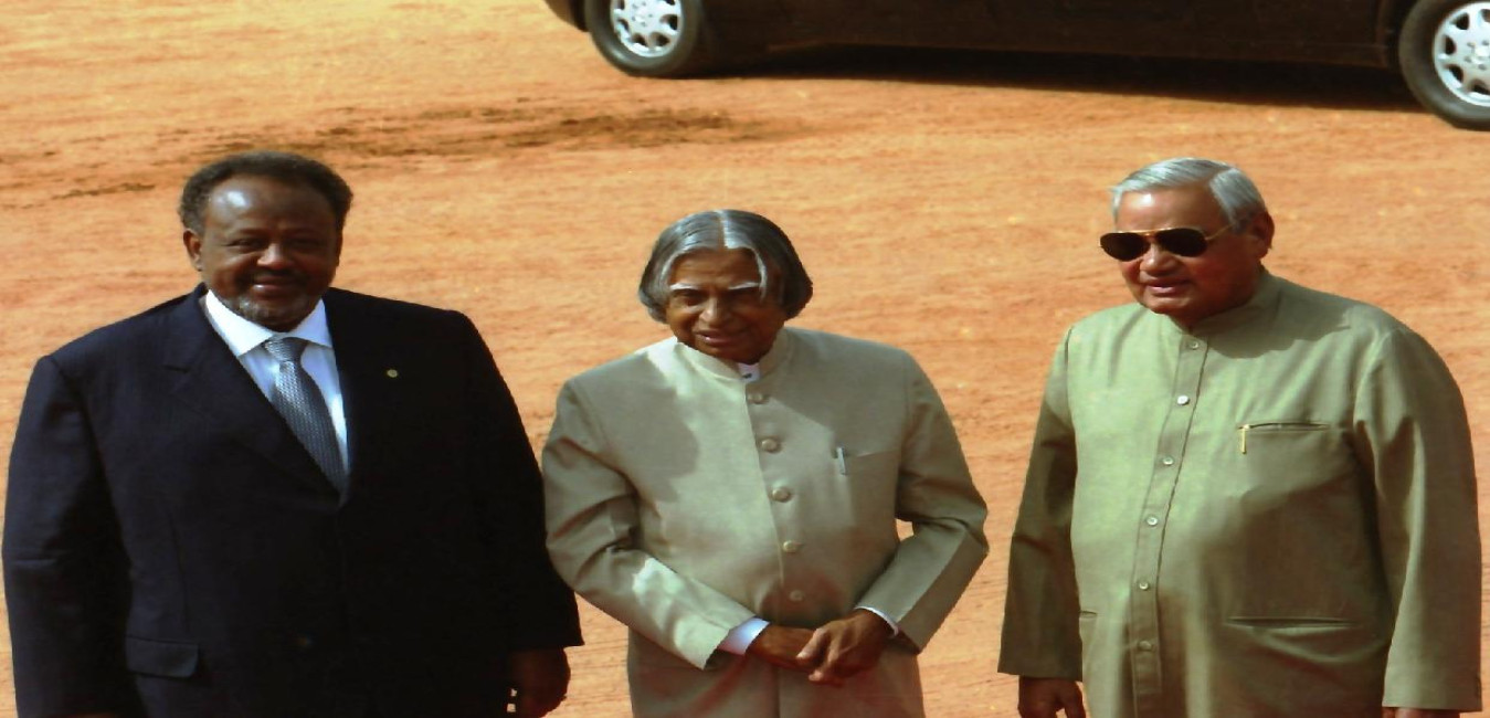 The President of the Republic of Djibouti, HE Mr Ismail Omar Guelleh calling on the President of India, Dr A P J Abdul Kalam at the North Drawing Room of Rashtrapati Bhavan in New Delhi on May 19, 2003