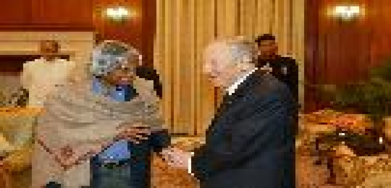 The Emir of State of Qatar, H H Sheikh Bin Khalifa AI- Thani calling on the President of India, Dr A P J Abdul Kalam at the North Drawing Room at Rashtrapati Bhavan in New Delhi on April 14, 2005