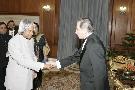 The President of Romanian, HE Mr Traian Basescu and his wife Mrs Maria Basescu calling on the President of India, Dr A P J Abdul Kalam at the North Drawing Room of Rashtrapati Bhavan in New Delhi on Oct 23, 2006