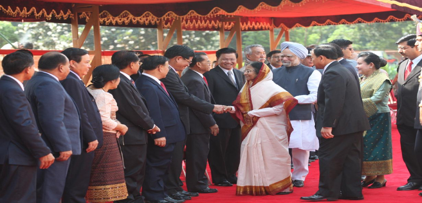 The President of India, Smt Pratibha Devisingh Patil at the Ceremonial Reception of the President of the Lao People's Democratic Republic, His Excellency Mr Choummaly Sayasone at the Forecourt of Rashtrapati Bhavan in New Delhi on Aug 27, 2008