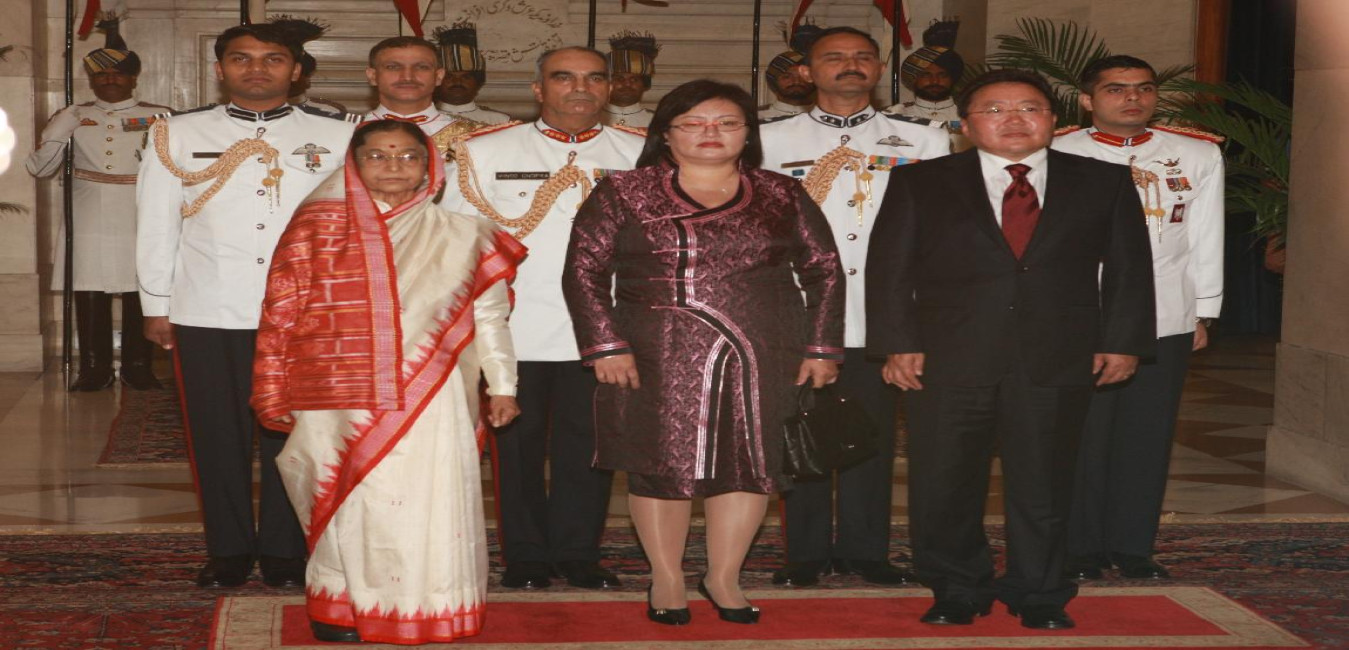 The President of Mongolia, HE Mr Tsakhiagiin Elbegdorj calling on the President of India, Smt Pratibha Devisingh Patil at Rashtrapati Bhavan in New Delhi on Sep 14, 2009
