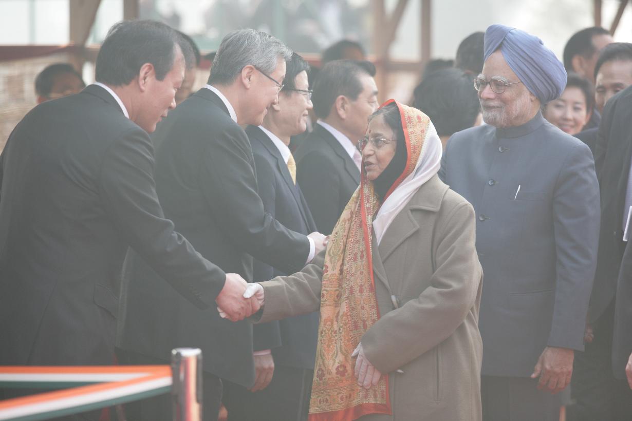 The President of the Republic of Korea, HE Mr Lee Myung-bak calling on the President of India, Smt Pratibha Devisingh Patil at Rashtrapati Bhavan in New Delhi on Jan 25, 2010