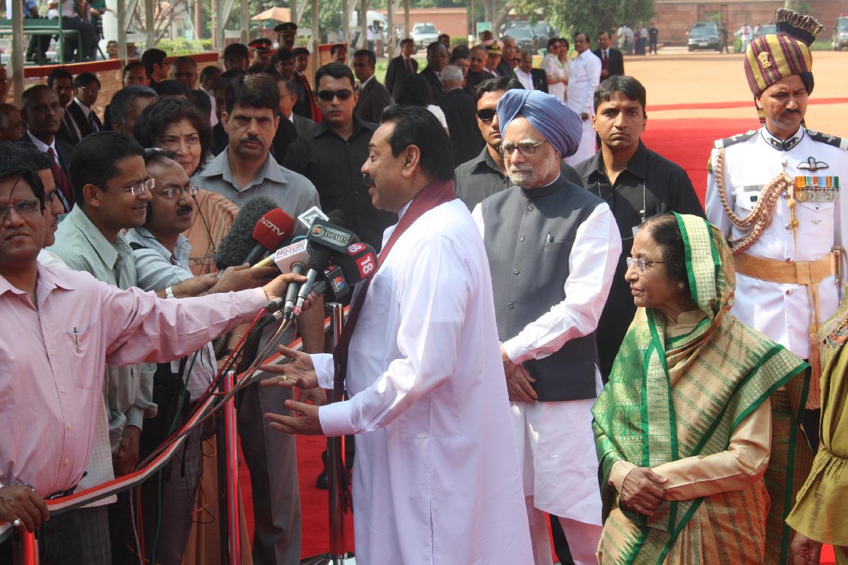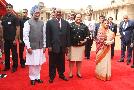 The President of India, Smt Pratibha Devisingh Patil at the Ceremonial Reception of the President of Sri Lanka, HE Mr Mahinda Rajapaksa and his wife Mrs Shiranthi Rajapaksa at Forecourt of Rashtrapati Bhavan in New Delhi on June 09, 2010