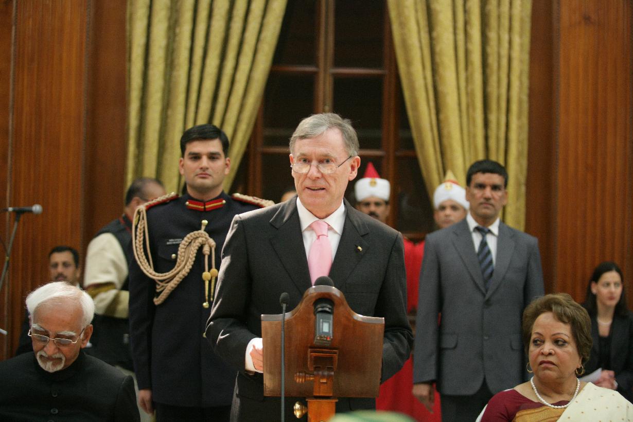 The President of the Federal Republic of Germany, HE Dr Horst Kohler and his wife, Mrs Eva Luise Kohler calling on the President of India, Smt Pratibha Devisingh Patil at Rashtrapati Bhavan in New Delhi on Feb 02, 2010