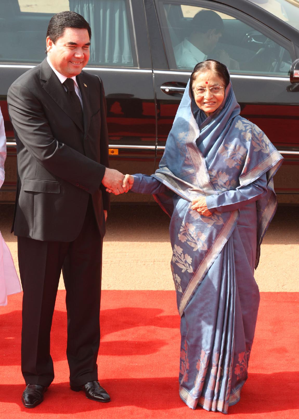 The President of India, Smt Pratibha Devisingh Patil at the Ceremonial Reception of the President of Turkmenistan, HE Mr Gurbanguly Berdimuhamedov at Rashtrapati Bhavan in New Delhi on May 25, 2010