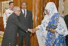The President of the United Republic of Tanzania, Mr. Jakaya Kikwete and Mrs. Salma Kikwete calling on the President of India, Shri Pranab Mukherjee, at Rashtrapati Bhavan, in New Delhi on June 19, 2015.