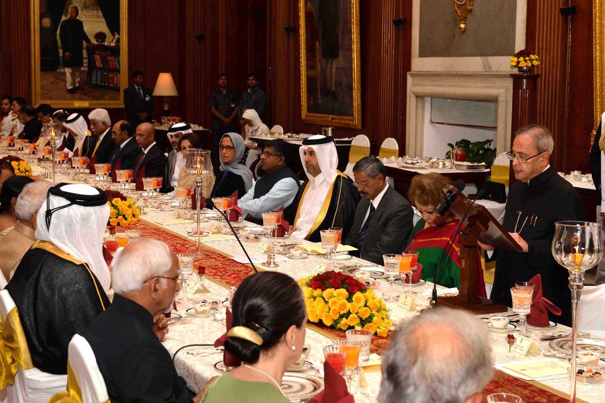 The President of India, Shri Pranab Mukherjee during the Banquet in honour of the Emir of the State of Qatar, His Highness Sheikh Tamim Bin Hamad Al-Thani, at Rashtrapati Bhavan, in New Delhi on March 25, 2015.