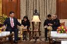 The President of the People s Republic of China, HE Mr Xi Jinping calling on the President of India, Shri Pranab Mukherjee at Rashtrapati Bhavan in New Delhi on Sep 18, 2014