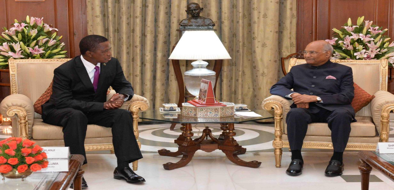 The President of the Republic of Zambia, H.E. Mr. Edgar Chagwa Lungu calling on the President of India, Shri Ram Nath Kovind, at Rashtrapati Bhavan on August 21, 2019.