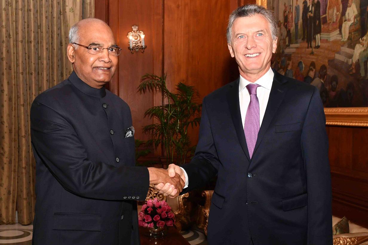 The President of the Argentine Republic, H.E. Mr. Mauricio Macri calling on the President of India, Shri Ram Nath Kovind, at Rashtrapati Bhavan on February 18, 2019.