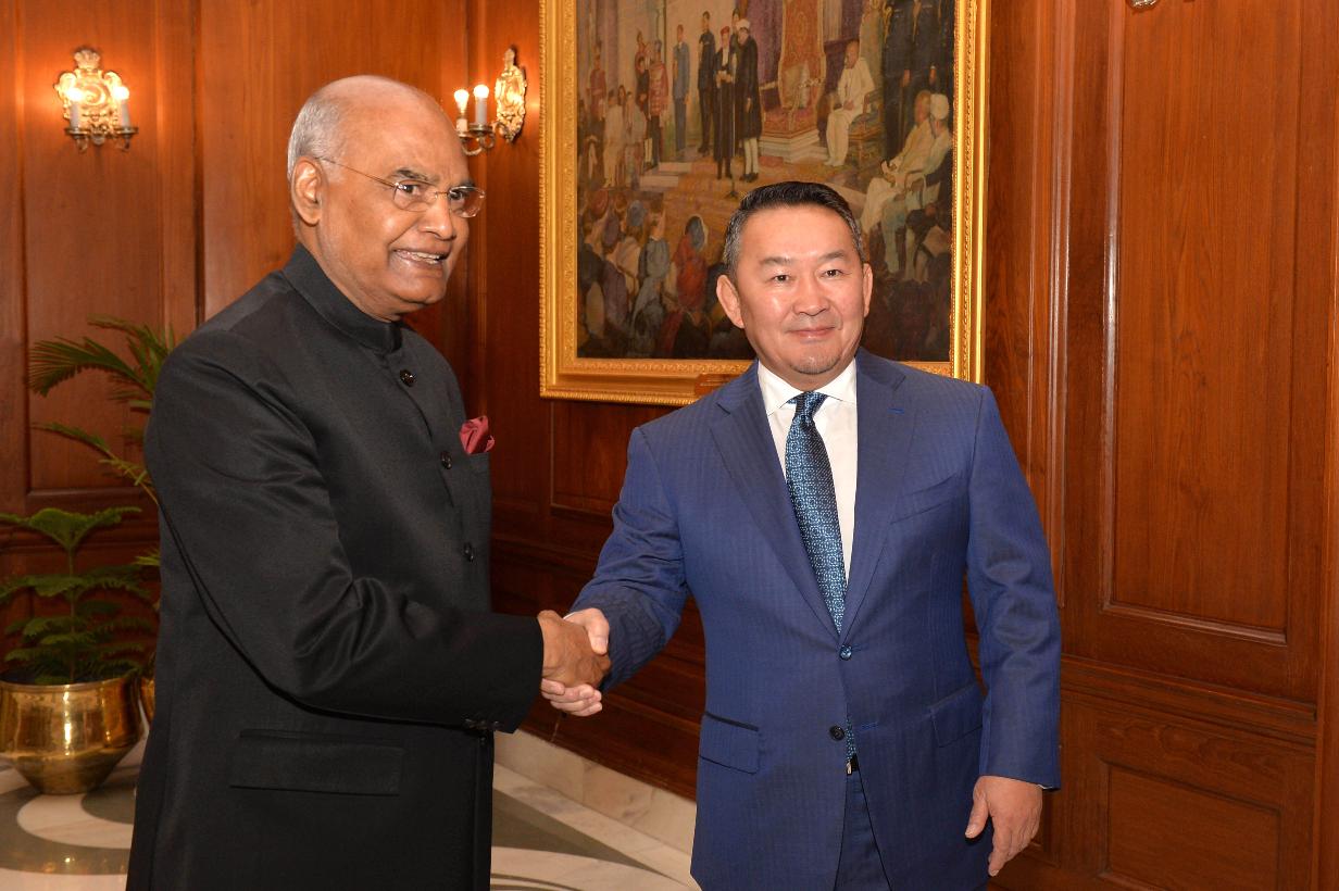 The President of Mongolia, H.E. Mr. Khaltmaagiin Battulga calling on the President of India, Shri Ram Nath Kovind, at Rashtrapati Bhavan on September 20, 2019.