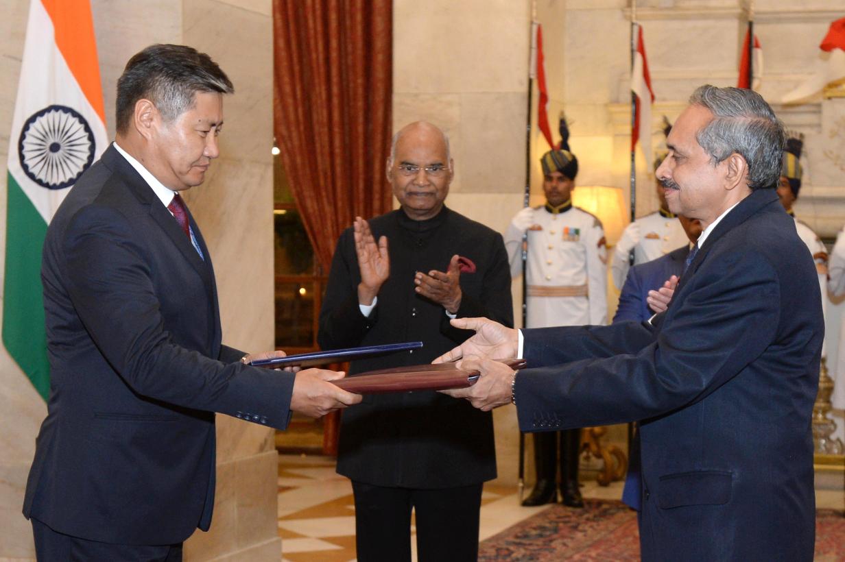 The President of India, Shri Ram Nath Kovind hosting a banquet in honour of the President of Mongolia, H.E. Mr. Khaltmaagiin Battulga, at Rashtrapati Bhavan on September 20, 2019.