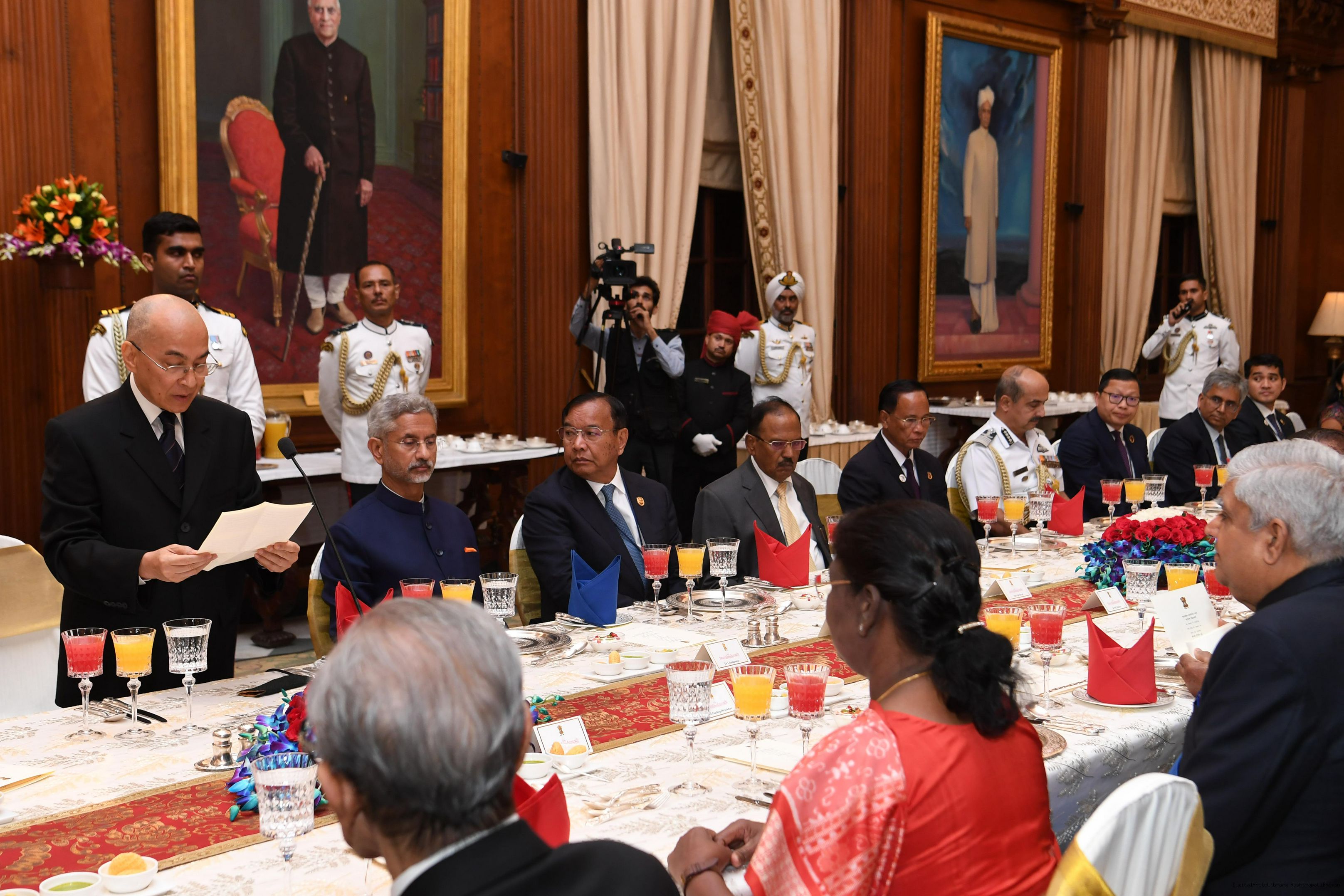 The President of India, Smt. Draupadi Murmu hosted a Banquet in honour of His Majesty Preah Bat Samdech Preah Boromneth Norodom Sihamoni, the King of Cambodia at Rashtrapati Bhavan on May 30, 2023.