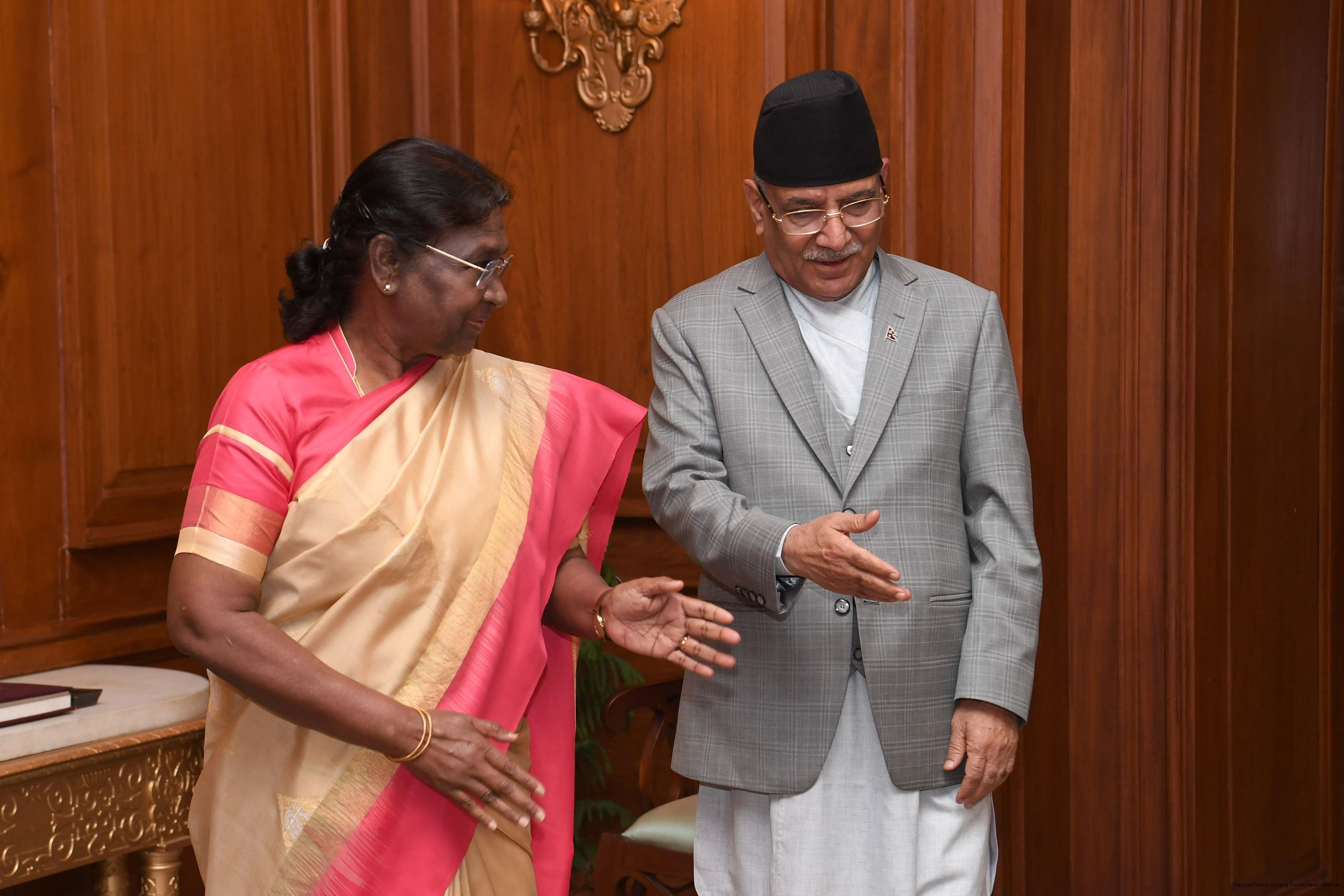 The Prime Minister of Nepal, Rt. Hon'ble Pushpa Kamal Dahal 'Prachanda' called on the President of India, Smt. Droupadi Murmu at Rashtrapati Bhavan on June 01, 2023.