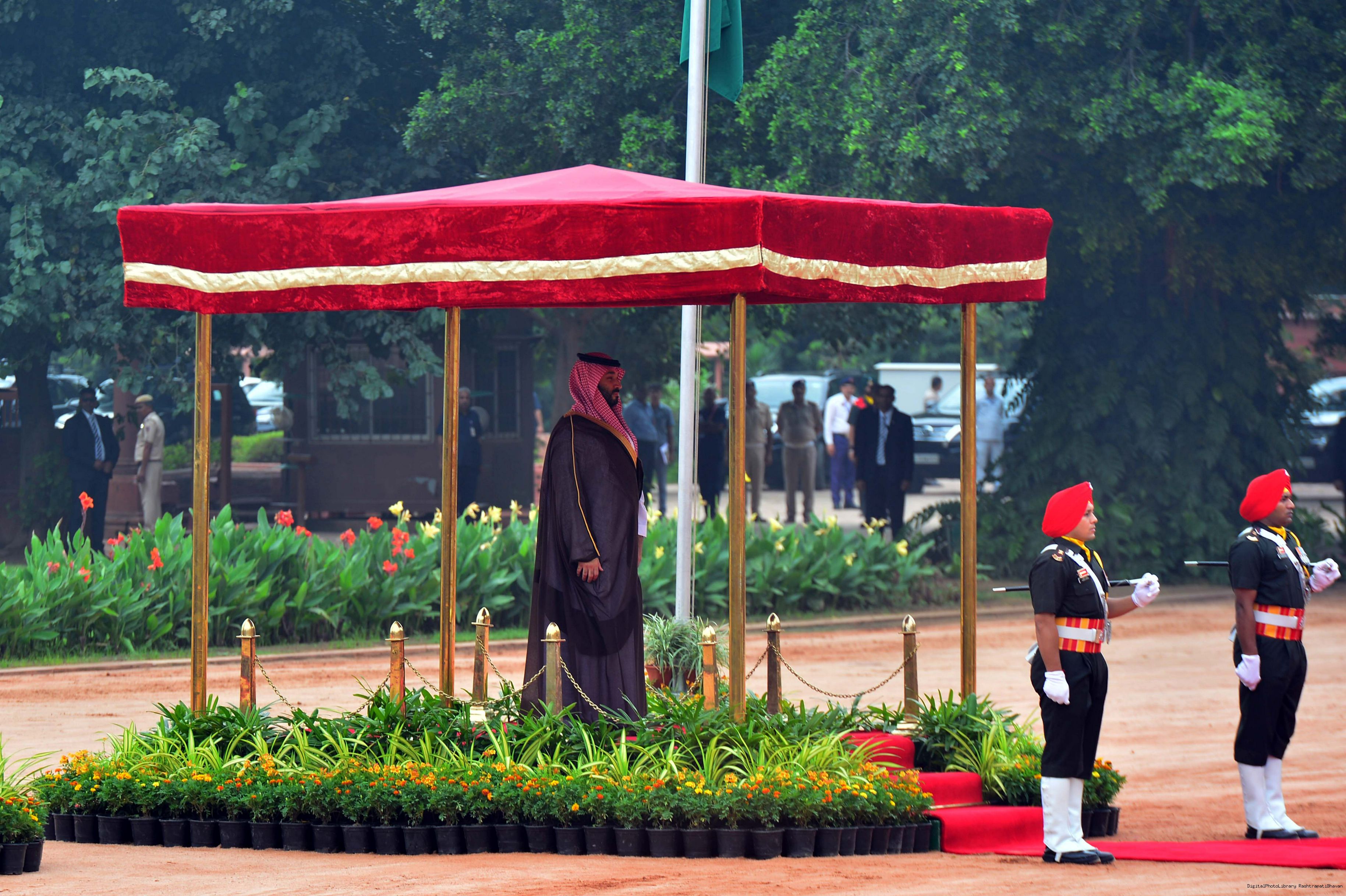 The President of India, Smt Droupadi Murmu accords a ceremonial welcome to His Royal Highness Prince Mohammed bin Salman bin Abdulaziz Al Saud, the Crown Prince and Prime Minister of the Kingdom of Saudi Arabia at Rashtrapati Bhavan in New Delhi on September 11, 2023.