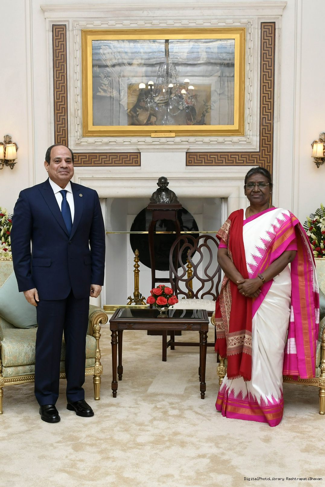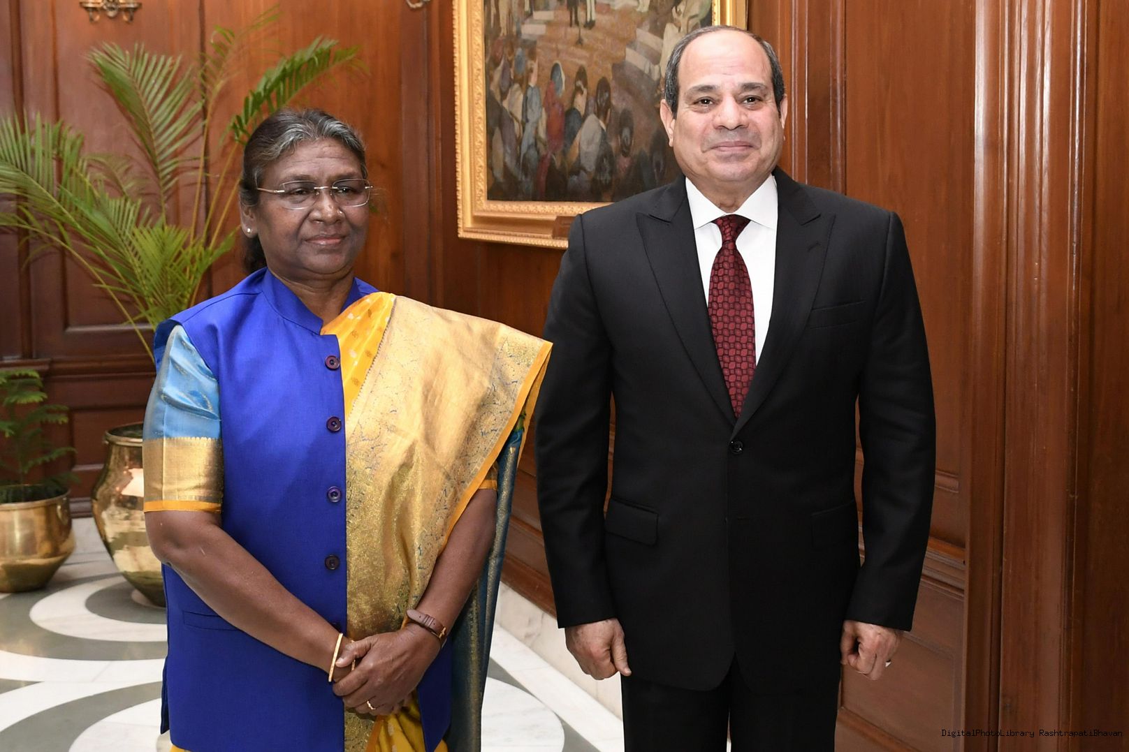 The President of India, Smt. Droupadi Murmu Meeting with H.E. Mr. Abdel Fattah El-Sisi, President of Republic of Egypt after return from RD Parade at Rashtrapati Bhawan January 26, 2023.