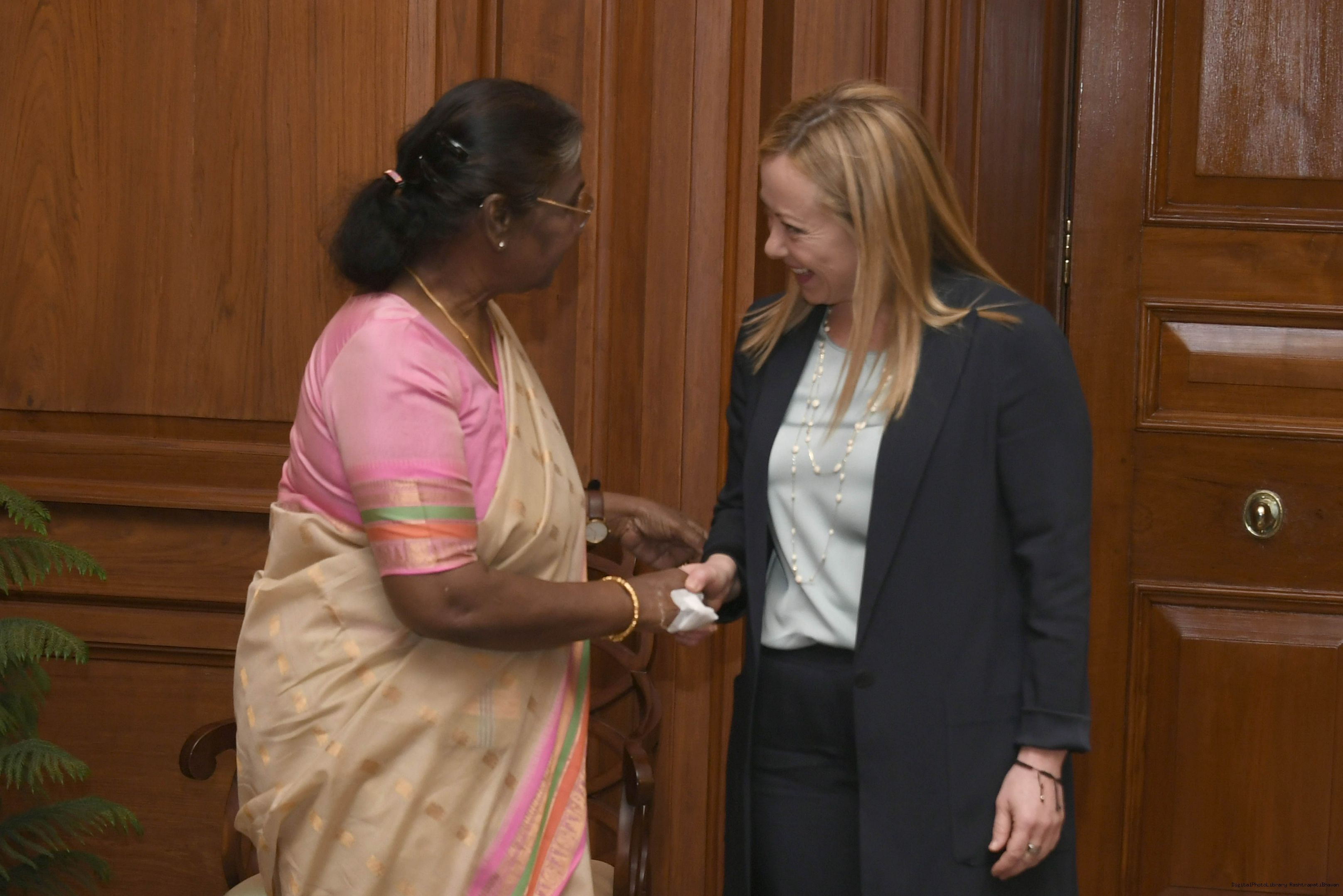 The Prime Minister of the Italian Republic, HE Ms. Giorgia Meloni called on the President of India, Smt. Droupadi Murmu, at Rashtrapati Bhavan on March 2, 2023.