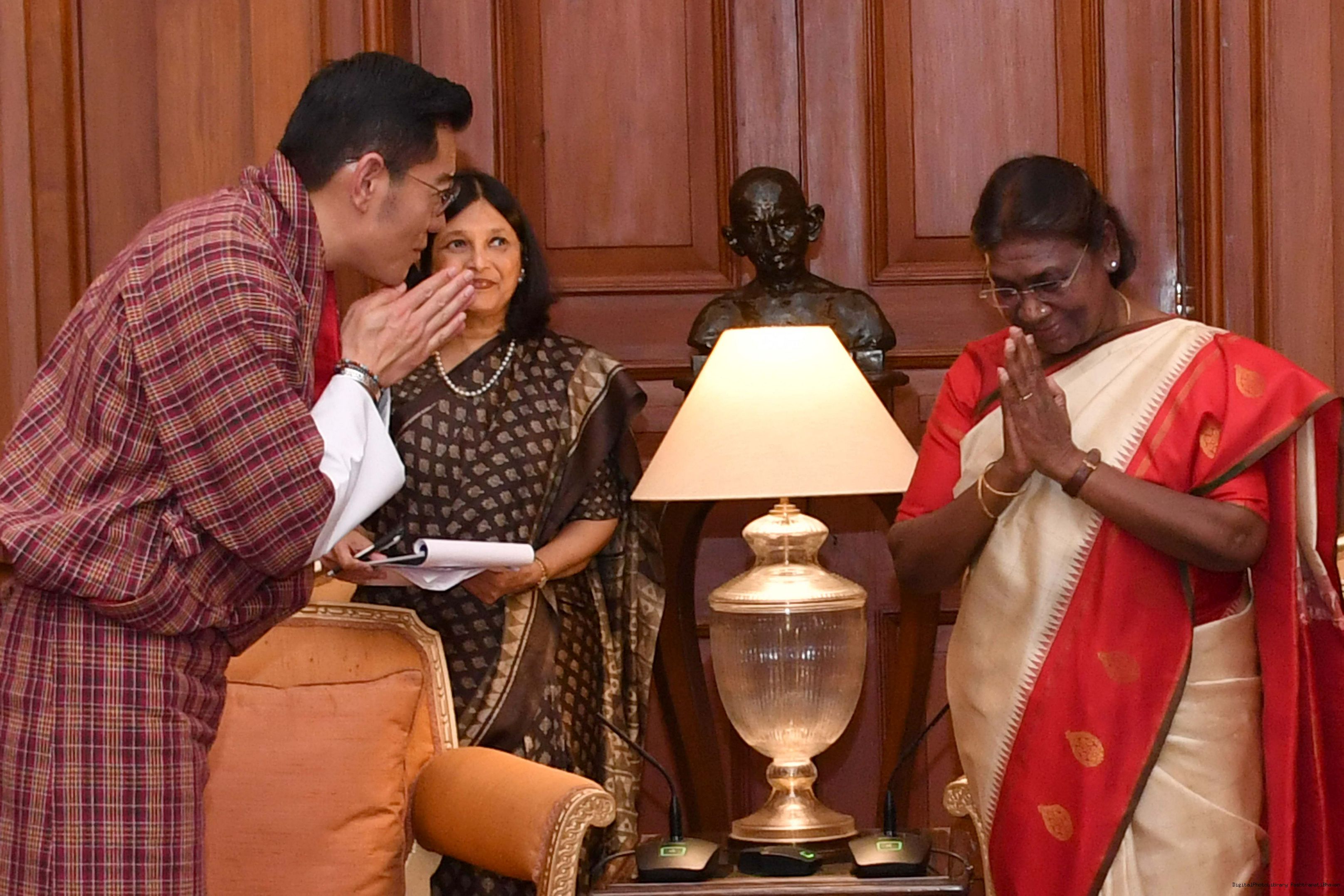 The President of India, Smt Droupadi Murmu Call on by H.M. Jigme Khesar Namgyel Wangchuck, King of Bhutan at Rashtrapati Bhavan on April 04, 2023