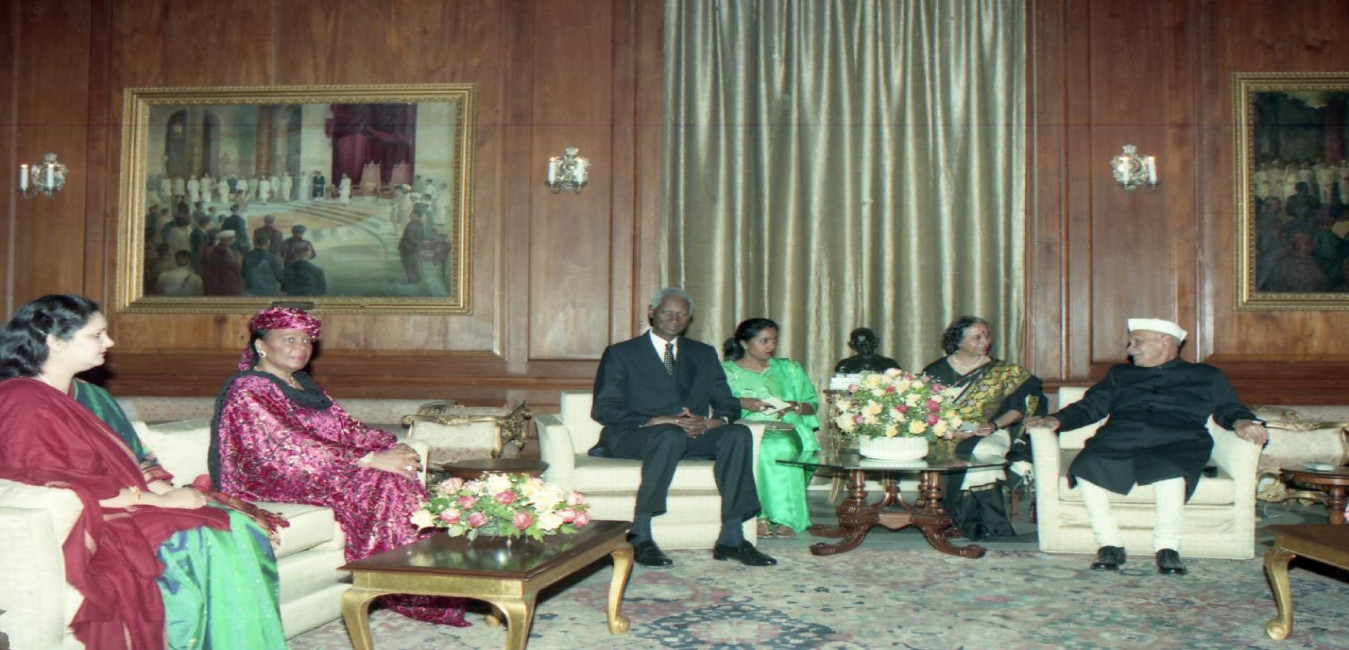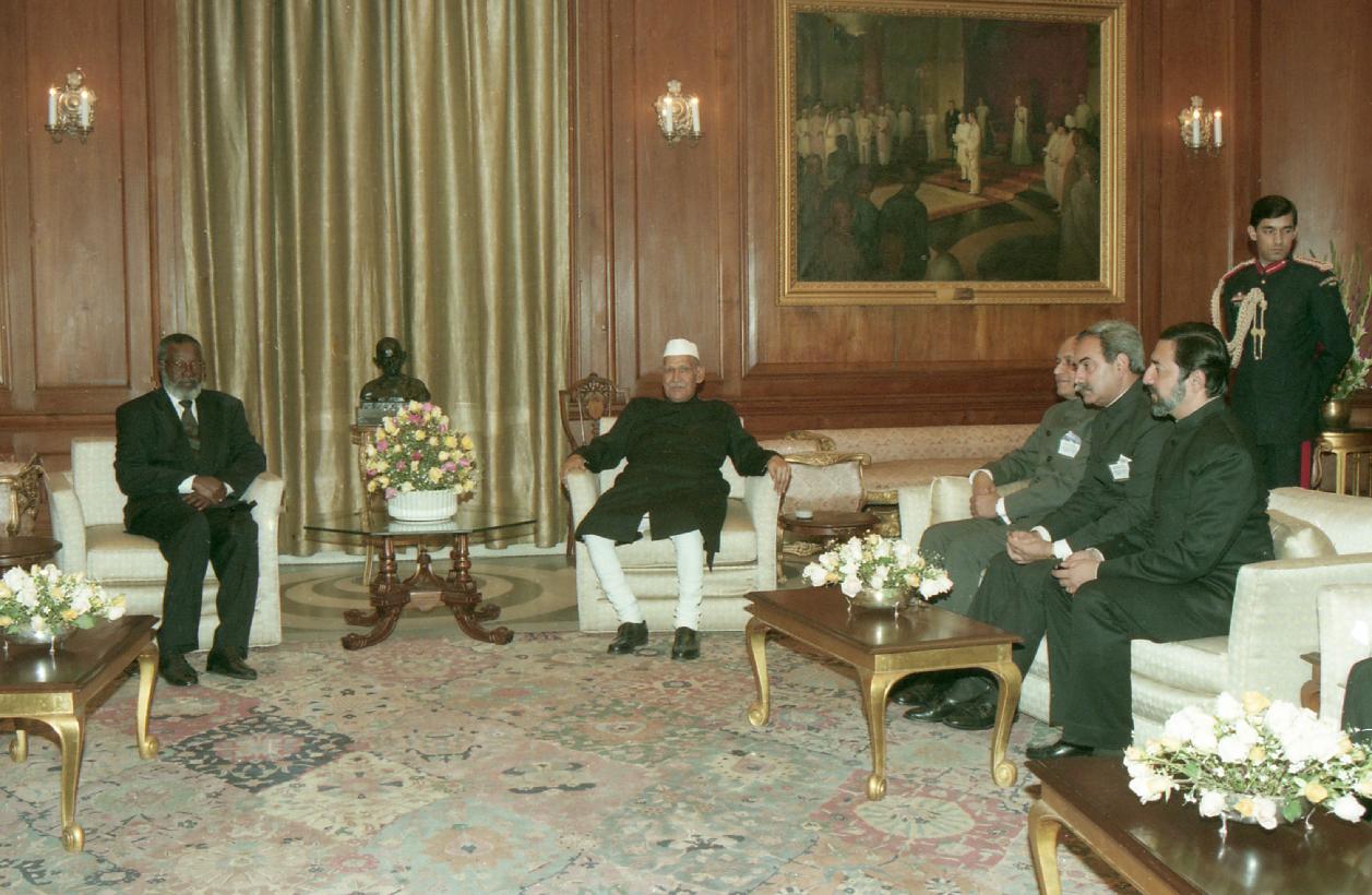 The President of the Republic of Namibia, HE Dr. Sam Nujoma calling on the President of India, Dr. Shankar Dayal Sharma, at Rashtrapati Bhavan in New Delhi on February 14, 1997.