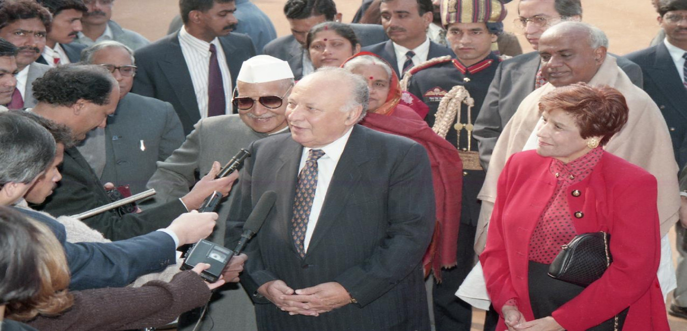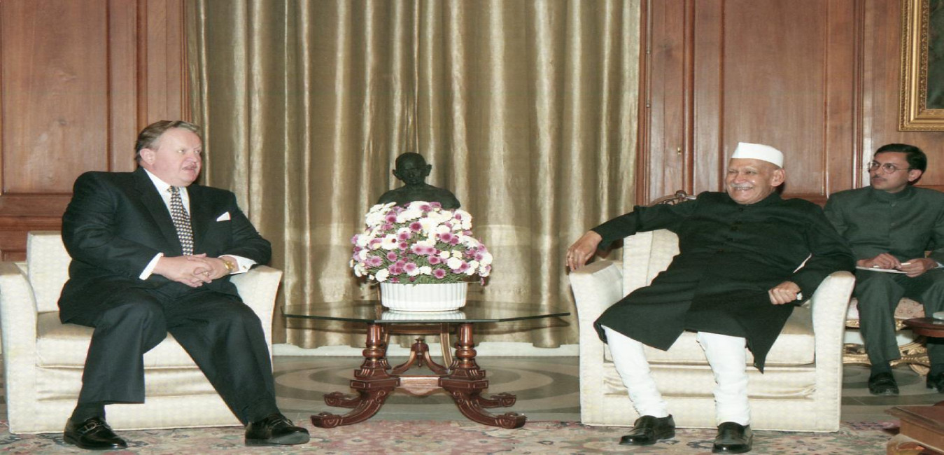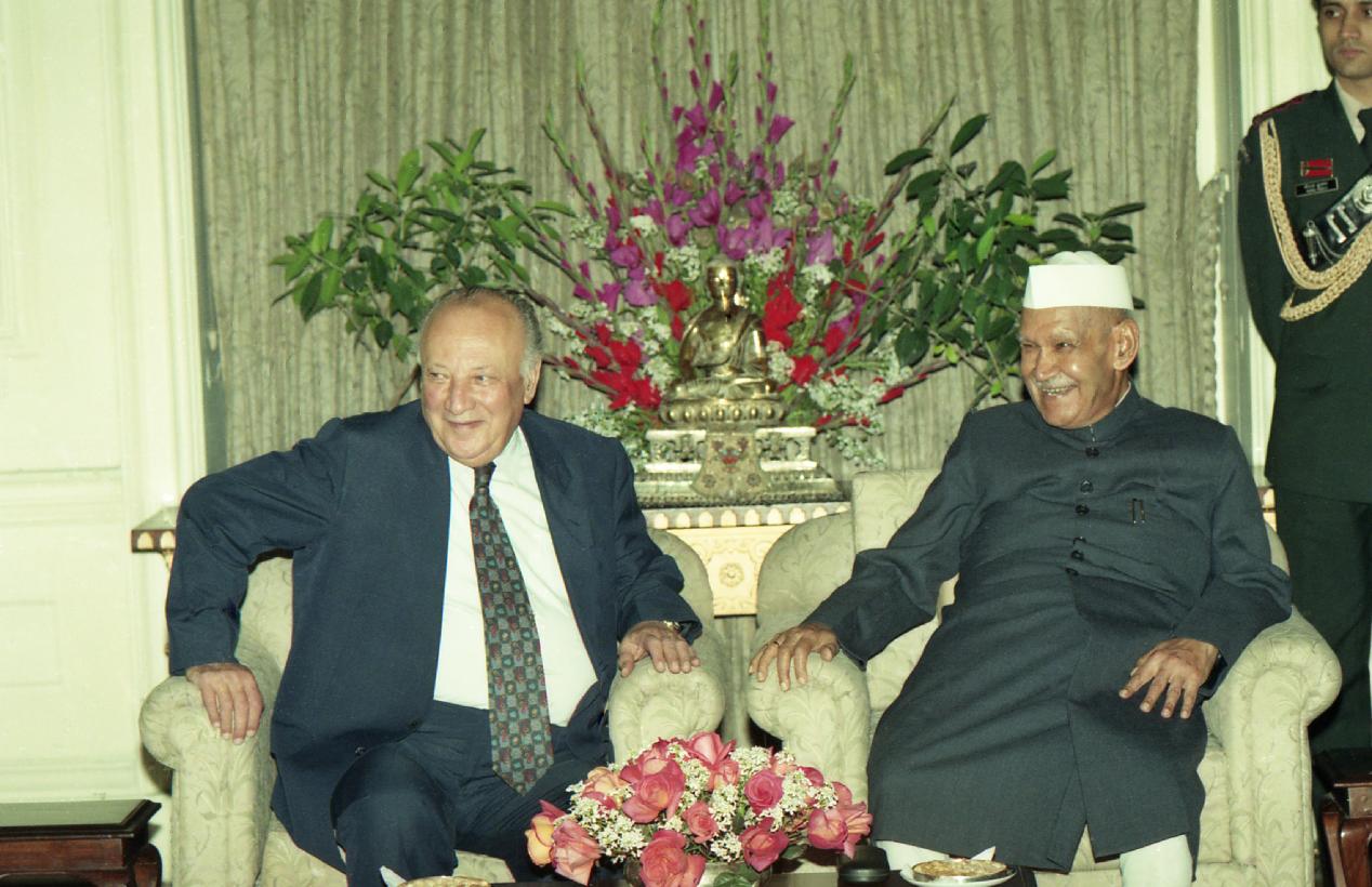 The President of the Republic of Cyprus, HE Mr. Glafcos Clerides calling on the President of India, Dr. Shankar Dayal Sharma, at Rashtrapati Bhavan in New Delhi on February 10, 1997.