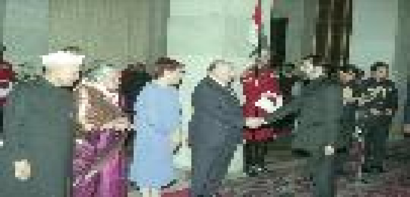 The President of India, Dr. Shankar Dayal Sharma meeting with the President of Turkmenistan, HE Mr. S.A. Niyazov at the Ceremonial Reception, at Rashtrapati Bhavan in New Delhi on February 25, 1997.