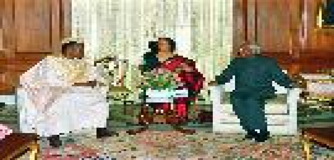 The President of the Burkina Faso, HE Mr Blaise Compaore and his Madame Chantal Compaore calling on the President of India, Shri K R Narayanan at the North Drawing Room of Rashtrapati Bhavan in New Delhi on Nov 11, 1997