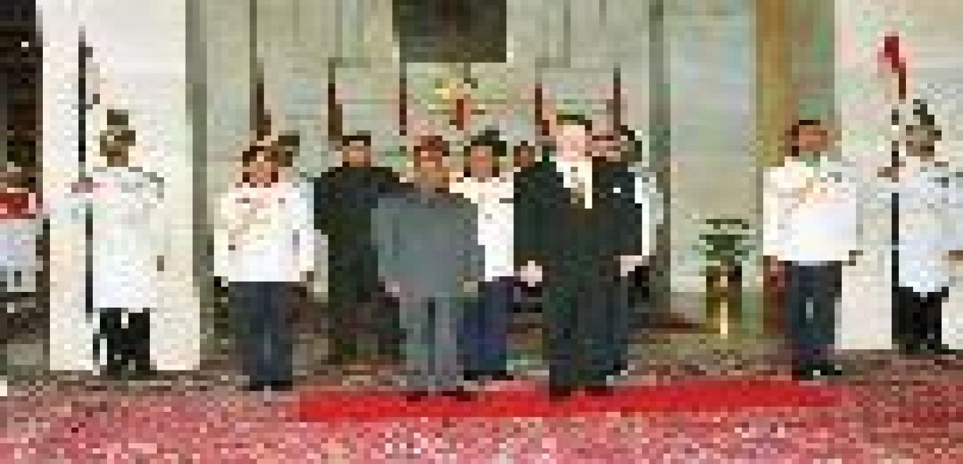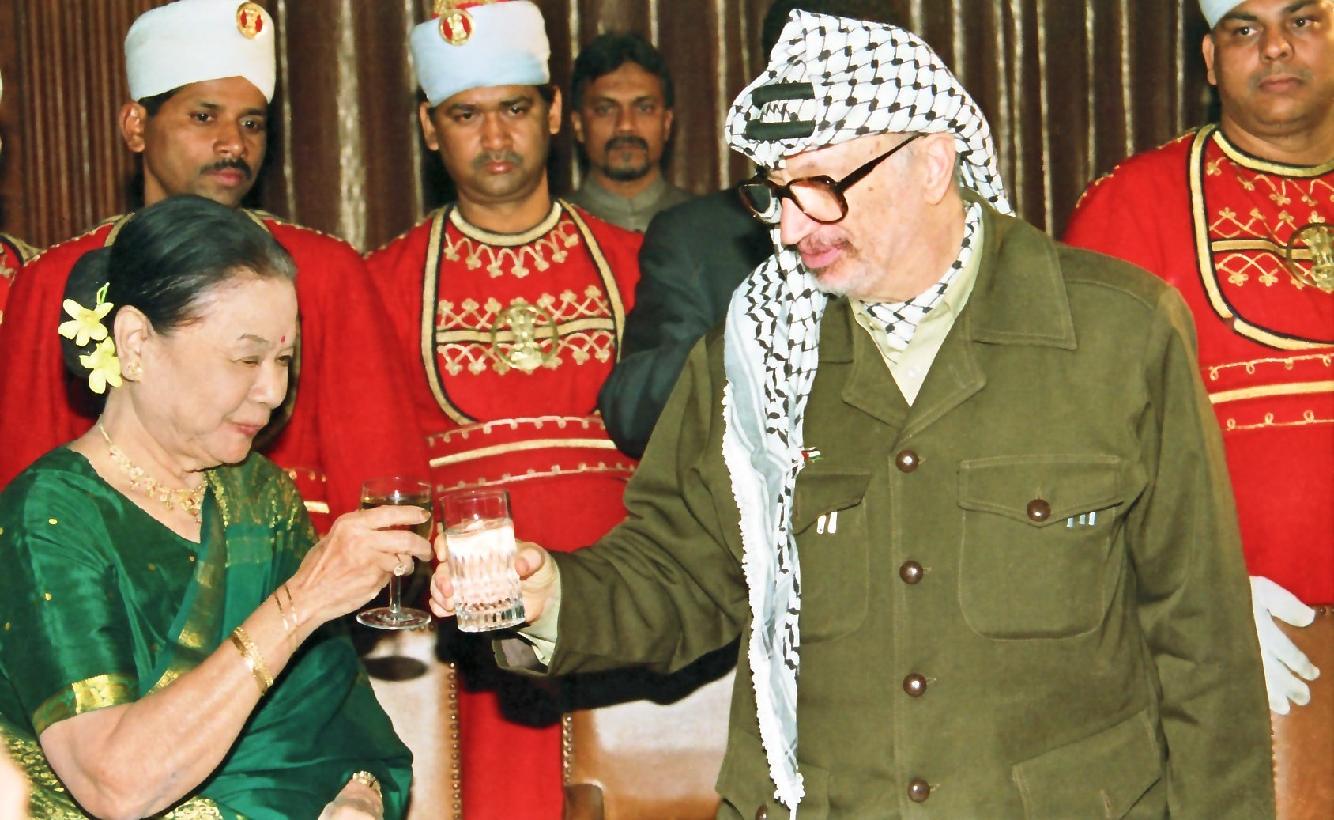 The President of India, Shri K R Narayanan at the Banquet Hosted in Honour of the Distinguished Guest President of the State of Palestine, HE Mr Yasir Arafat at the Banquet Hall of Rashtrapati Bhavan in New Delhi on Nov 20, 1997