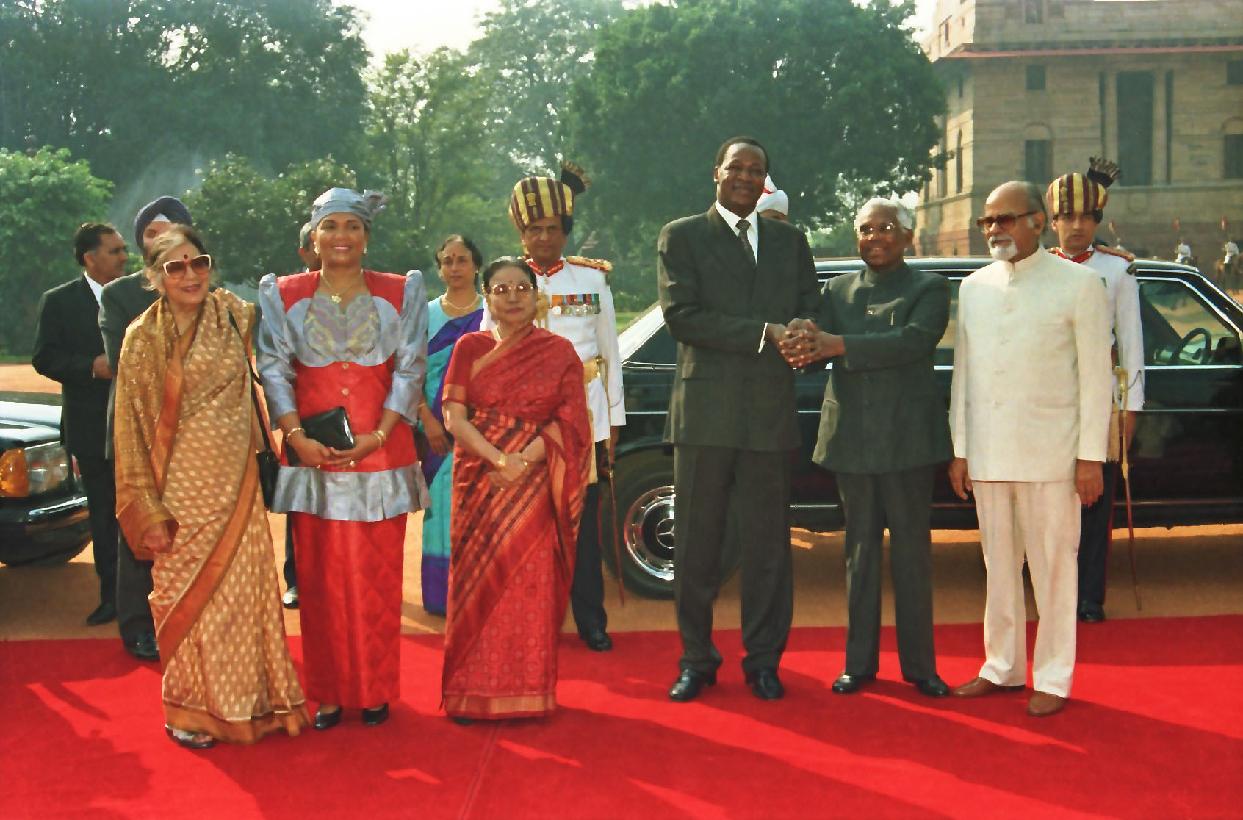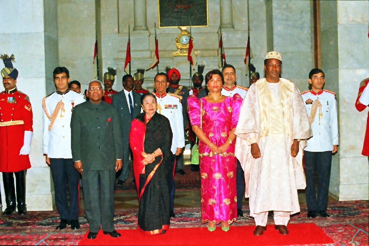 The President of India, Shri K R Narayanan at the Ceremonial Reception of President of the Burkina Faso, HE Mr Blaise Compaore and his Madame Chantal Compaore at the Forecourt of Rashtrapati Bhavan in New Delhi on Nov 11, 1997