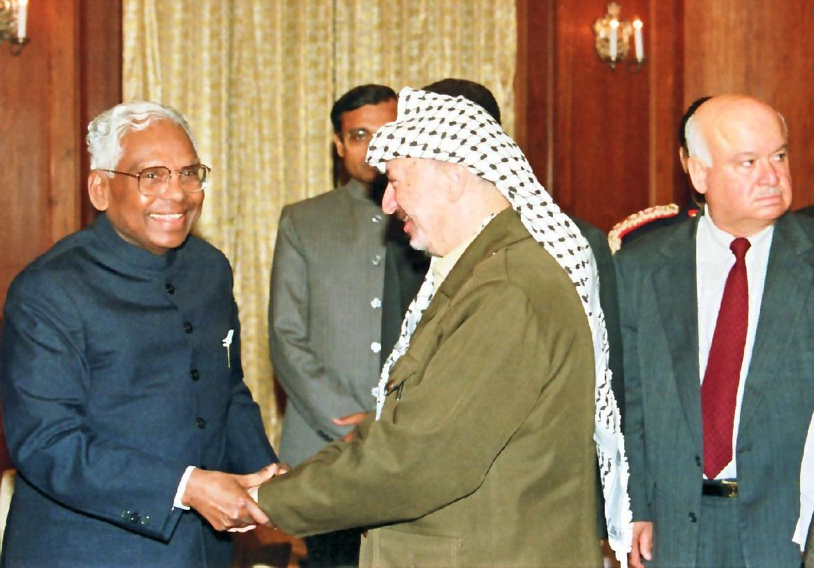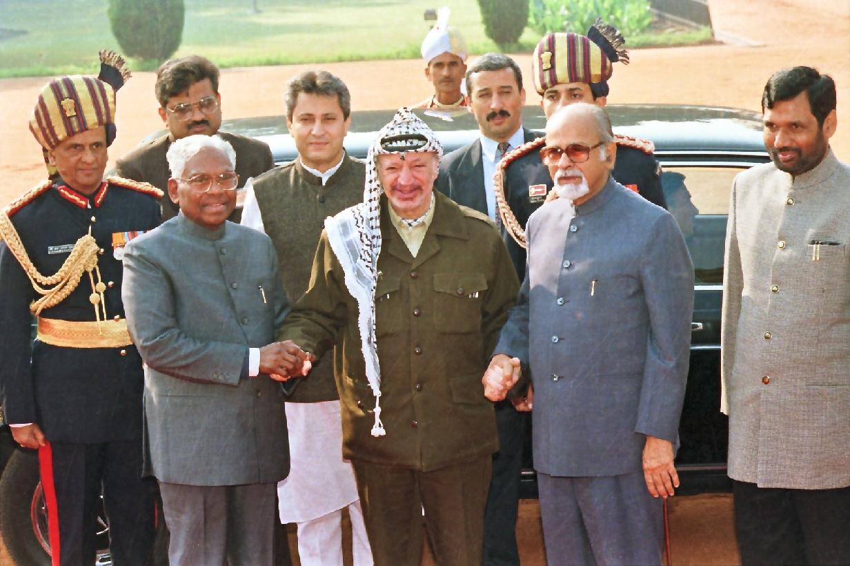 The President of the State of Palestine, HE Mr Yasir Arafat calling on the President of India, Shri K R Narayanan at the North Drawing Room of Rashtrapati Bhavan in New Delhi on Nov 20, 1997