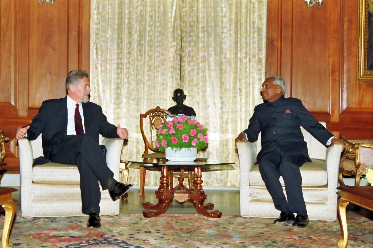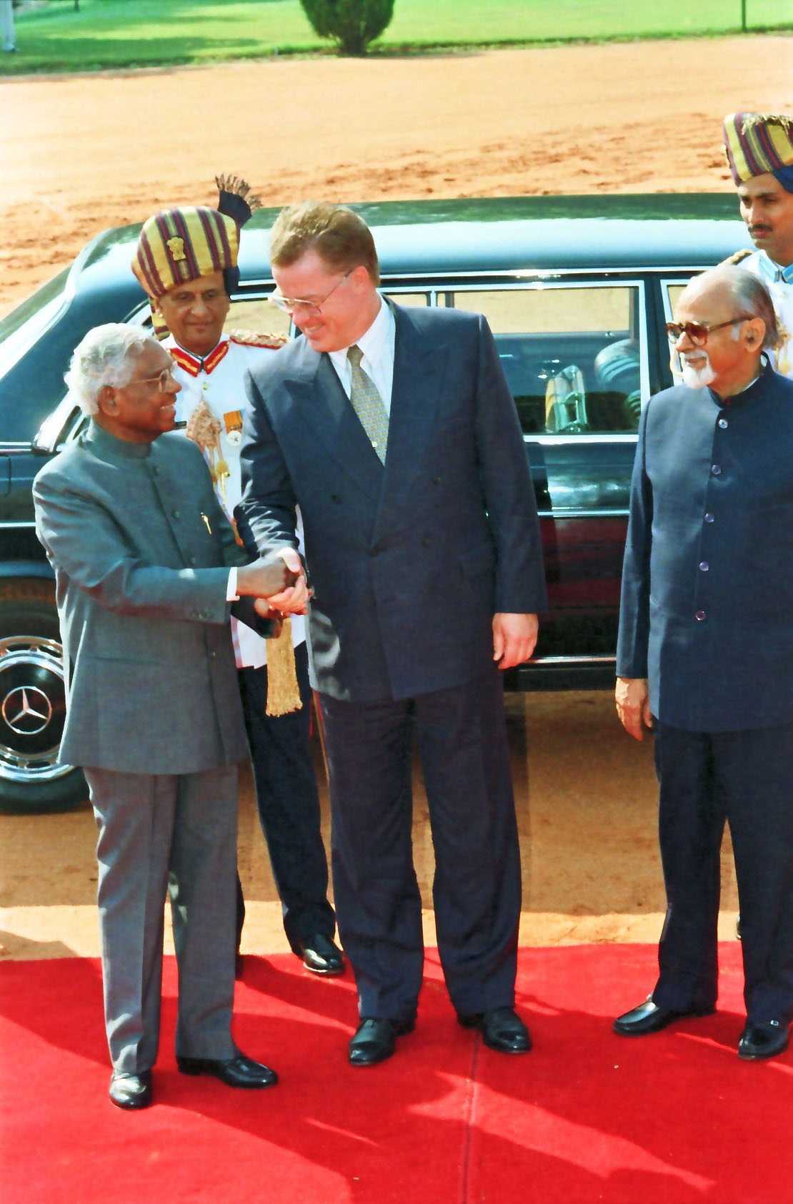 The President of the Republic of Latvia, HE Mr Guntis Ulmanis calling on the President of India, Shri K R Narayanan at the North Drawing Room of Rashtrapati Bhavan in New Delhi on Oct 20, 1997