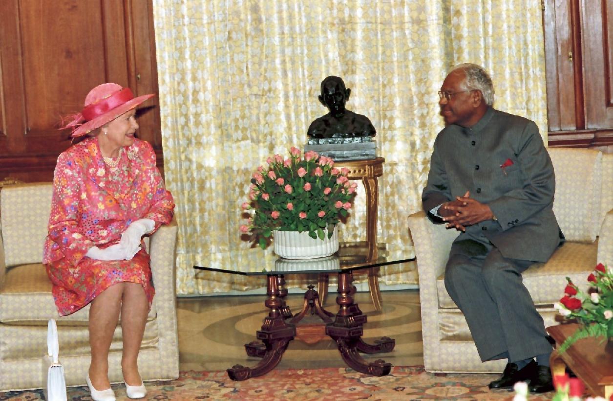 The Queen of United Kingdom, Her Majesty Queen Elizabeth II and His Royal Highness Prince Philip, Duke of Edinburgh calling on the President of India, Shri K R Narayanan at the North Drawing Room of Rashtrapati Bhavan in New Delhi on Oct 13, 1997