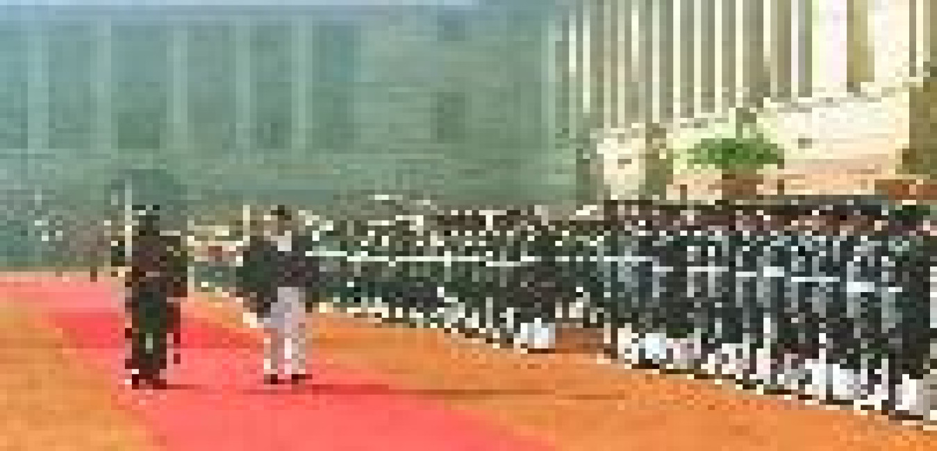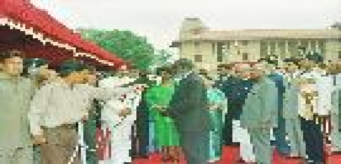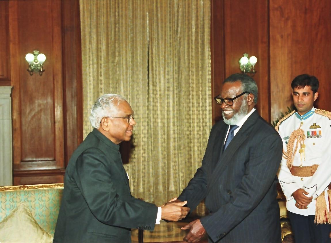 The President of India, Shri K R Narayanan at the Ceremonial Reception of the President of the Republic of Namibia, His Excellency Dr Sam Nujoma and his wife Mrs Kovambo Nujoma at the Forecourt of Rashtrapati Bhavan in New Delhi on July 21, 1999