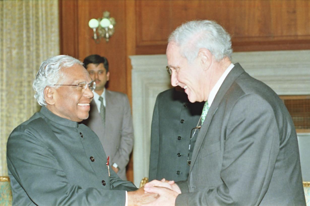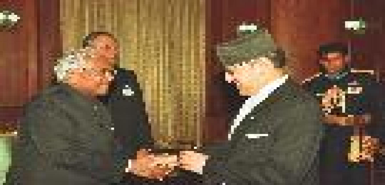 The President of India, Shri K R Narayanan at the Banquet Hosted in Honour of the President of the Kyrgyz Republic, HE Mr Askar Akayev and his wife Maryam Akayeva at the Banquet Hall of Rashtrapati Bhavan in New Delhi on April 13, 1999