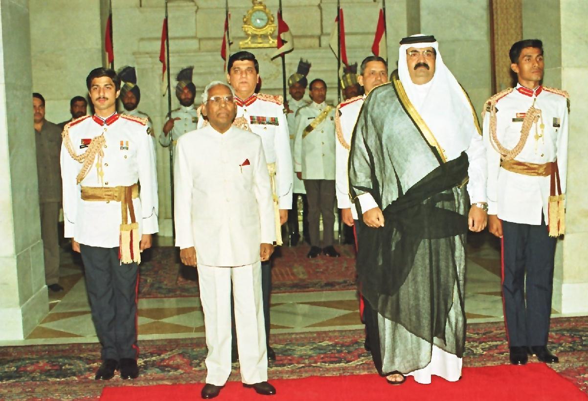 The President of India, Shri K R Narayanan at the Ceremonial Reception of the Emir of the State of Qatar, His Highness Sheikh Hamad Bin Khalifa Al Thani at the Forecourt of Rashtrapati Bhavan in New Delhi on April 07, 1999