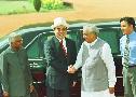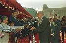 The President of India, Shri K R Narayanan at the Ceremonial Reception of the President of the Kyrgyz Republic, HE Mr Askar Akayev and his wife Maryam Akayeva at the Forecourt of Rashtrapati Bhavan in New Delhi on April 13, 1999