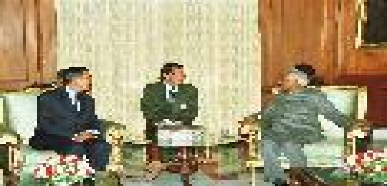 The Prime Minister of the Kingdom of Morocco, HE Mr Abderrahmane Youssoufi and his wife Helene Youssoufi calling on the President of India, Shri K R Narayanan at the North Drawing Room of Rashtrapati Bhavan in New Delhi on Feb 22, 2000