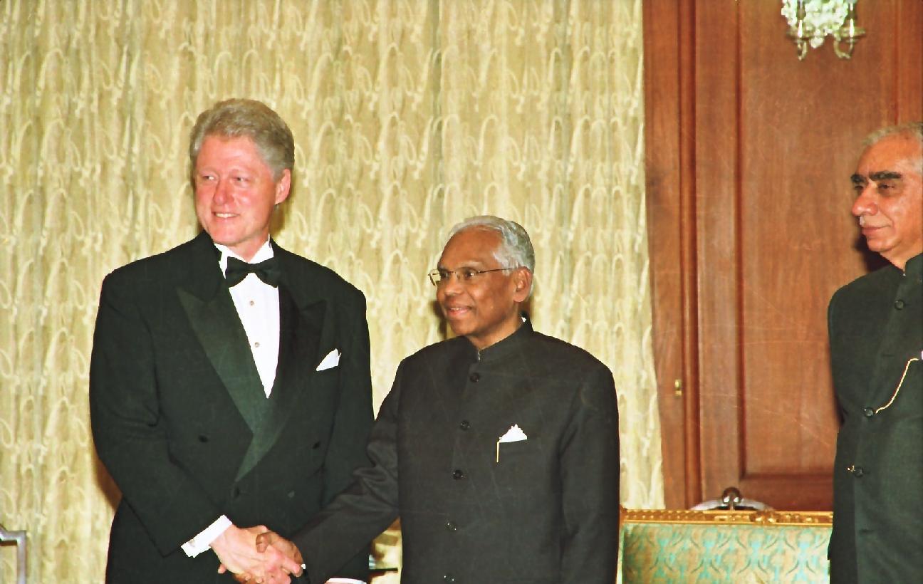 The President of India, Shri K R Narayanan at the Ceremonial Reception of the President of the United States of America, HE Mr William J Clinton at the Forecourt of Rashtrapati Bhavan in New Delhi on March 21, 2000