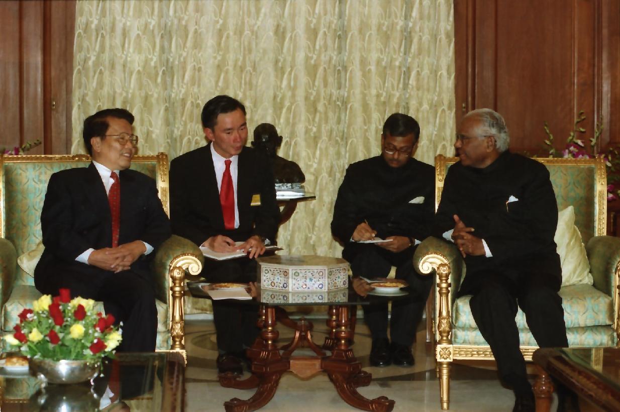 The Prime Minister of Singapore HE Mr Goh Chok Tong calling on the President of India, Shri K R Narayanan at the North Drawing Room of Rashtrapati Bhavan in New Delhi on Jan 18, 2000