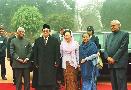 The President of India, Shri K R Narayanan at the Ceremonial Reception of President of the Republic of Indonesia, HE Mr Abdurrahman Wahid and his wife Mrs Sinta Nuriyah Abdurrahman Wahid at the Forecourt of Rashtrapati Bhavan in New Delhi on Feb 08, 2000