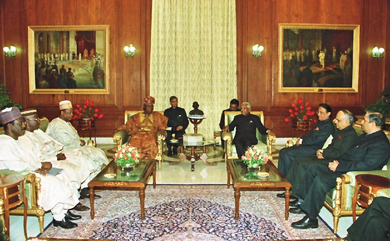 The President of the Federal Republic of Nigeria, HE Mr Olusengun Obasanjo calling on the President of India, Shri K R Narayanan at the North Drawing Room of Rashtrapati Bhavan in New Delhi on Jan 25, 2000