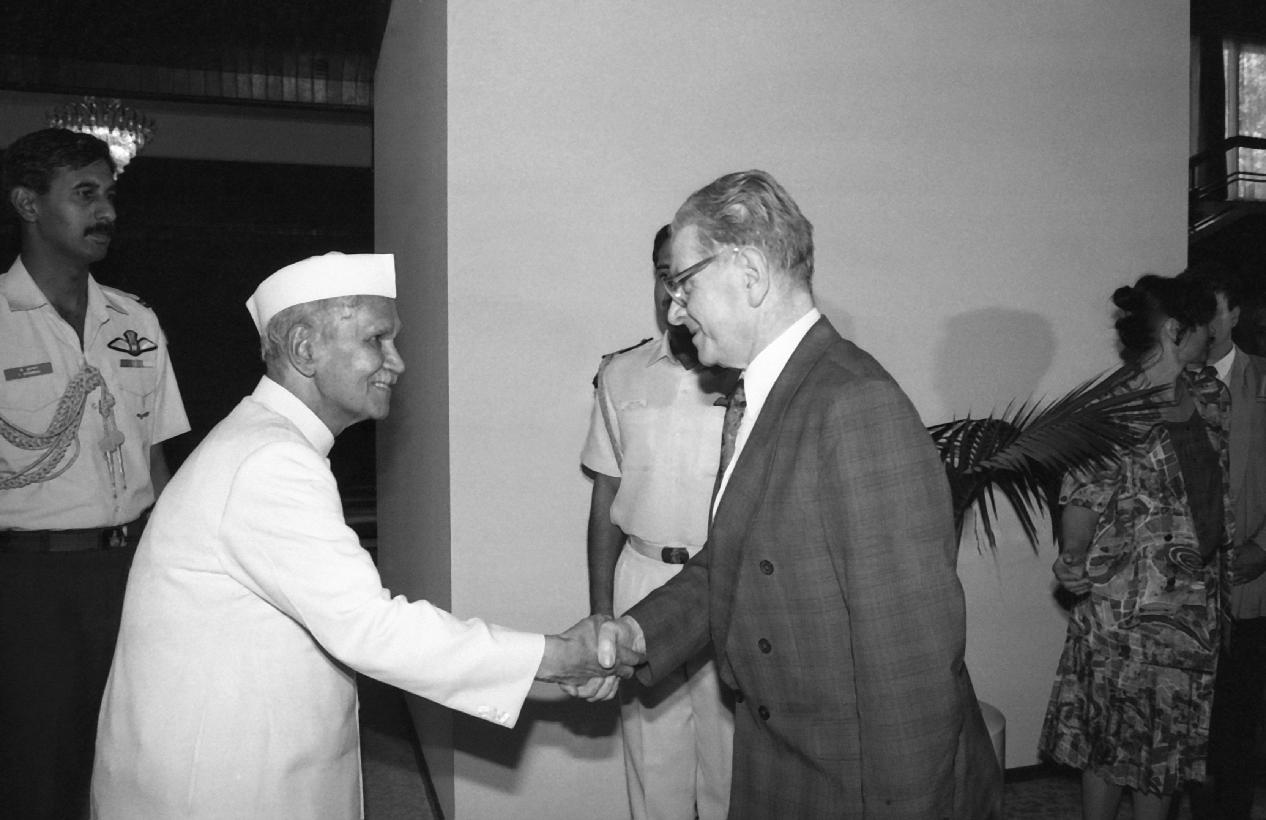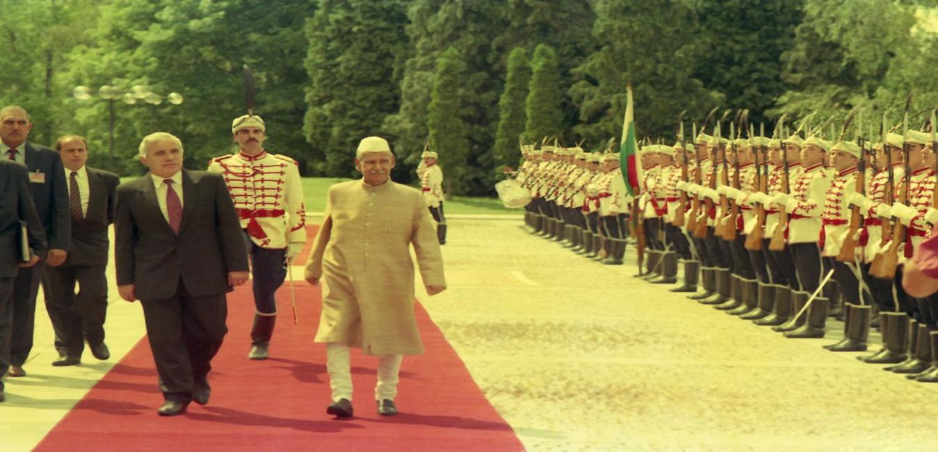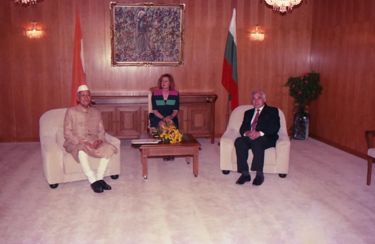 The President of India, Dr. Shankar Dayal Sharma alongwith the President of Bulgaria, Mr. Zhelyu Zhelev, at the Reception hosted by the Ambassador of India, Shri BP Agarwal, at Sofia, in Bulgaria on May 27, 1994.