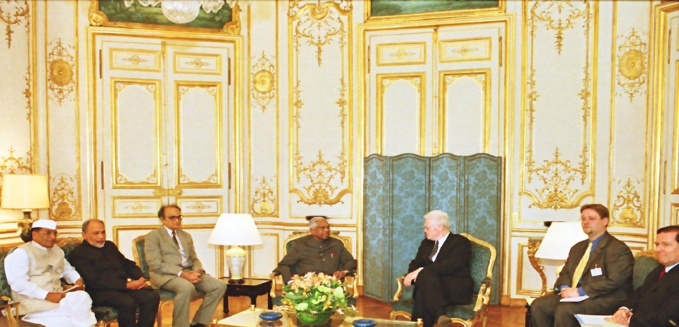The President of India, Shri K R Narayanan meeting the President of France Mr Jacques Chirac at Elysee Palace at Paris in France on April 17, 2000